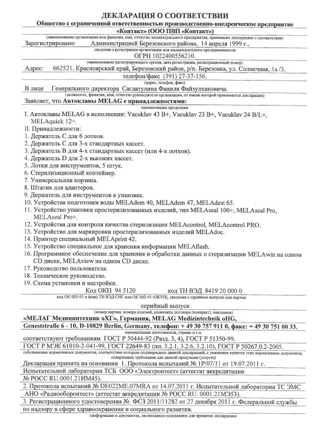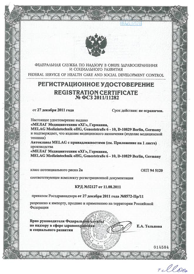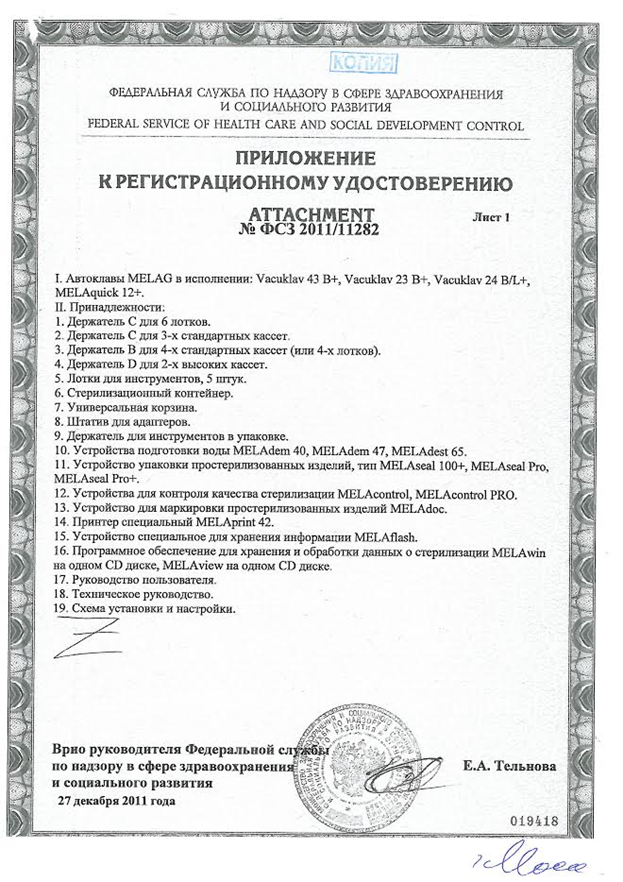 РУ и сертификаты для MELAquick 12