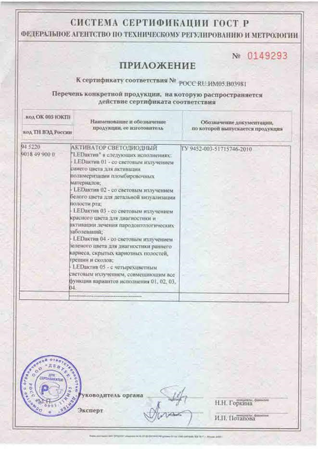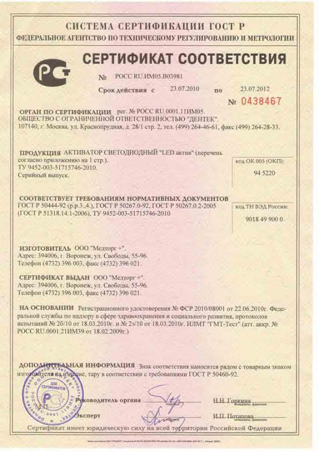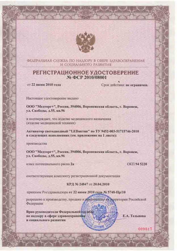 РУ и сертификаты для LEDактив-04